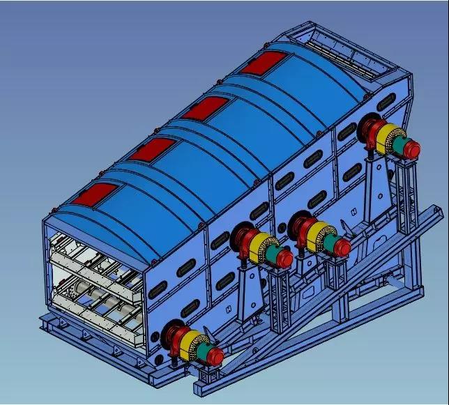 3、各个振动筛芯分节振动,可以实现各段筛面高频低幅、低频高幅的自由调节,改变了传统圆振筛同振源、同振幅、同振频的振动方式。
